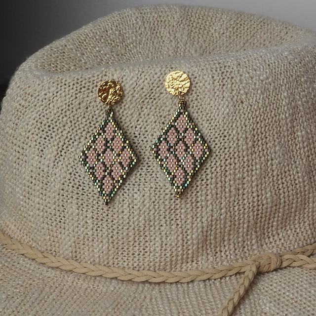 Losanges dans les tons KAKI aux reflets dorés-rose saumon