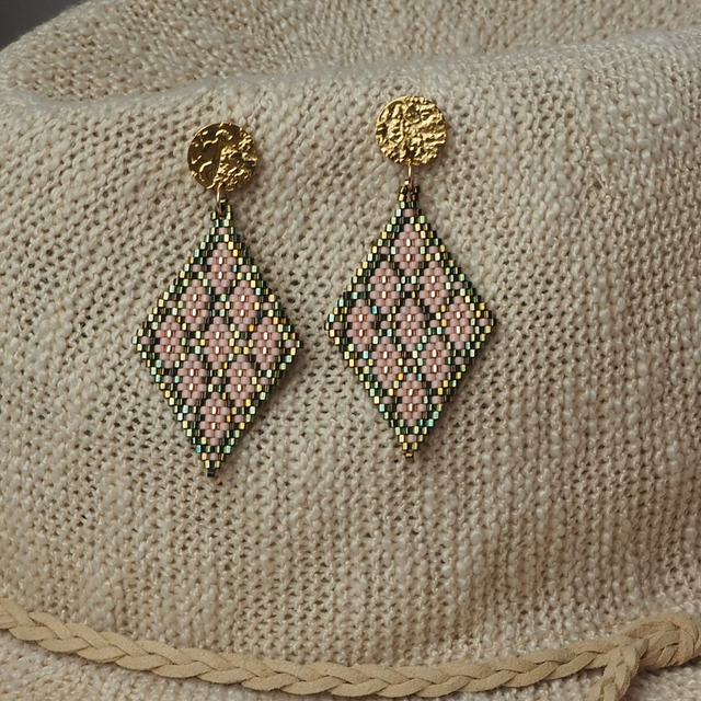 Boucles d'oreilles tissées à la main, en perles de verre