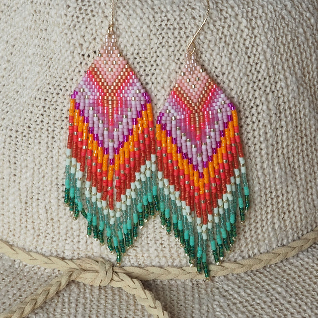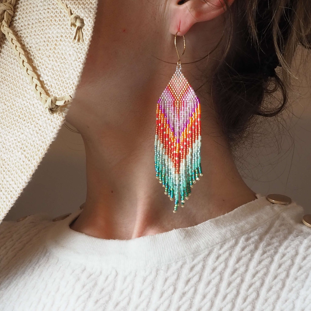 Boucles d'oreilles tissées main, en perles de verre -8h de Travail-